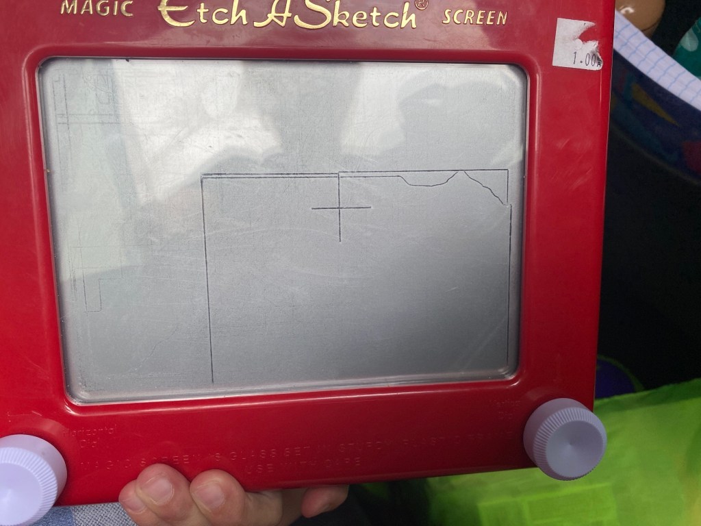 We heard stories of broken relationships with family, the loneliness and feeling lost as a veteran, the preaching nonstop in our faces of the Bible, how friendships on the streets started, the sadness of people looking down on them because they were homeless, and some shared how they ended up homeless. I had one sweet 8-year-old girl draw this picture of a church on her Etch-A-Sketch for me. This touched me because even though her family was struggling she knew God and what a church was.