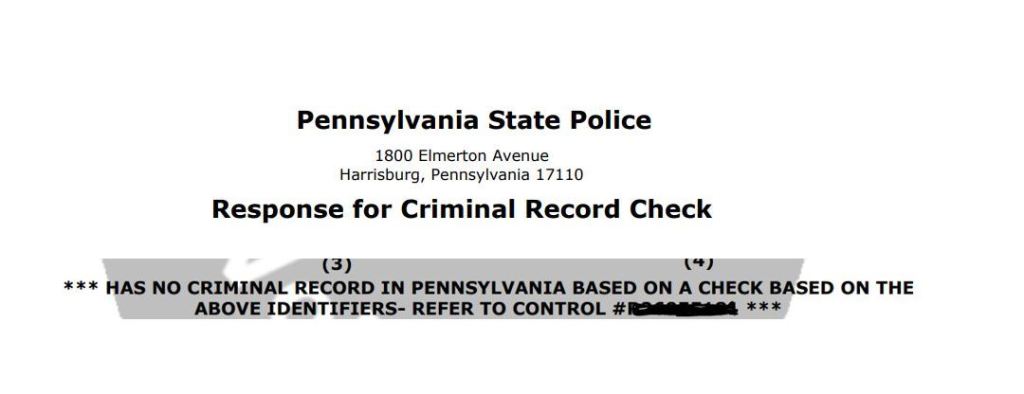 After somewhat recovering from this food poisoning, I was able to get my fingerprints done and off to Pennsylvania State Police. I am happy to say that today I was notified that I have been removed from the felon’s rap sheet and have a certification clearing me of all charges.