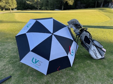 Then there is the big golf umbrella. Wide, vented for gusts of wind, and very protecting.
