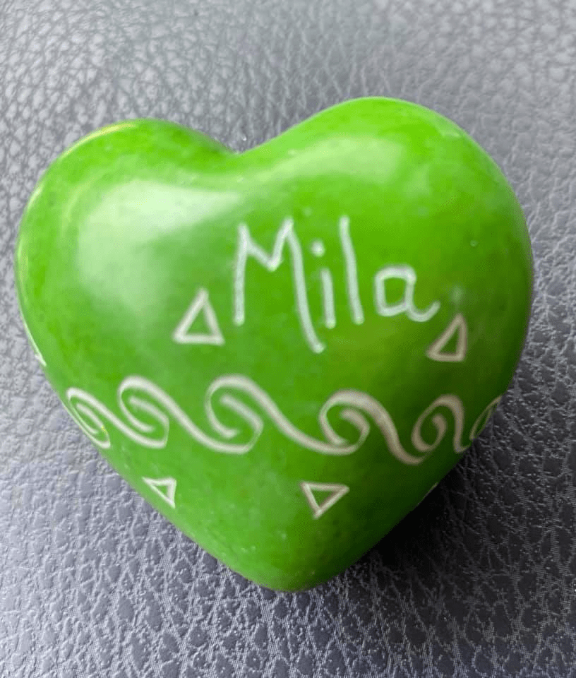 I then prepared small green (the awareness color of gastroschisis) gratitude hearts with Mila’s name on them to share with our prayer warriors. We asked friends and family to take a heart and pray for Mila’s development and delivery. We shared over 50 Mila hearts. My daughter’s fetal medicine team took hearts which allowed me to see God’s love in them.