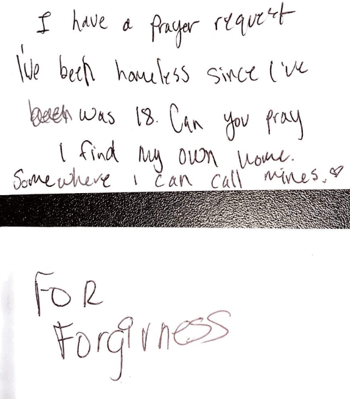 I had hoped to show you some of the handwritten prayer requests but most included the victim’s name and would always respect their privacy. I was able to crop these 2 prayer requests to show you the magnitude of their requests.